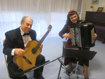 11 мая дуэт «Мелодия» получил приглашение выступить с концертом в одном из домов для пожилых людей солнечного побережья Квинсленда – Sunshine Coast. В исполнении гитариста Константина Русакова и баянистки Татьяны Китинг прозвучала музыка Георгия Свиридова, Морриса Джерри, Яна Френкеля, Нино Ротта, ЗденекФибих. Татьяна Китинг была сегодня и за ведущего и за музыканта. Она очень трогательно вела встречу. Собравшиеся люди пожилого возраста с восторгом приняли исполнителей. После каждого произведения долго аплодировали. «Марш» Георгия Свиридова так вдохновил зрителей, что один из резидентов готов был заплясать, забыв про свой 90-летний возраст. Сотрудники уютного, комфортабельного дома для пожилых, где очень тепло встречали гостей из Брисбена, сказали много слов благодарности в адрес музыкального дуэта. Получился настоящий праздник для мам и всех женщин. Пожелаем и мы замечательному брисбенскому дуэту «Мелодия» успехов и творческих находок, а также всем дорогим женщинам желаем счастья, духовной радости, любви и здравия.